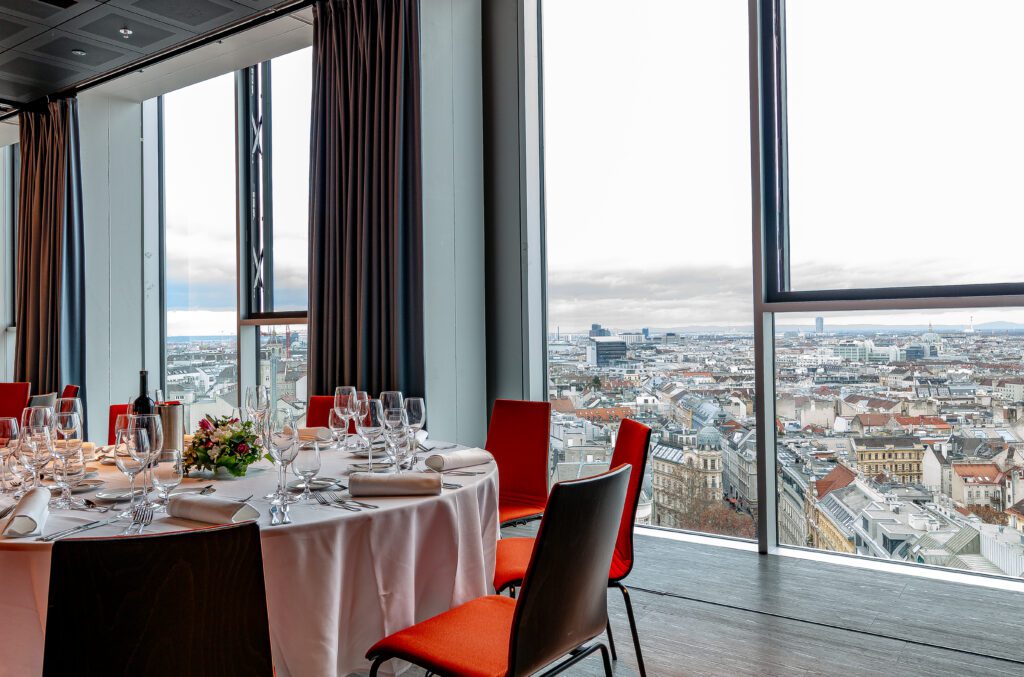 Der Weitblick über Wien, die ideale Lage, die elegante Ausstattung und ein perfekter Service versprechen zufriedene Gäste. Runden Sie Ihre Veranstaltung gerne mit einem ansprechenden Rahmenprogramm ab. Besuchen Sie mit Ihren Gästen den Wiener Prater, das Schloss Schönbrunn oder machen Sie eine Führung durch den Aqua Terra Zoo.
